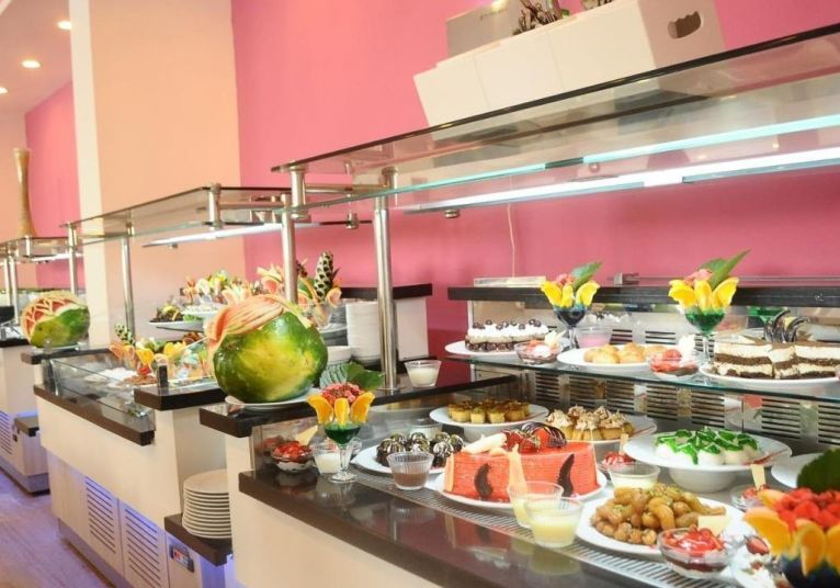 Основните ястия се сервират в основния ресторант (на самообслужване).