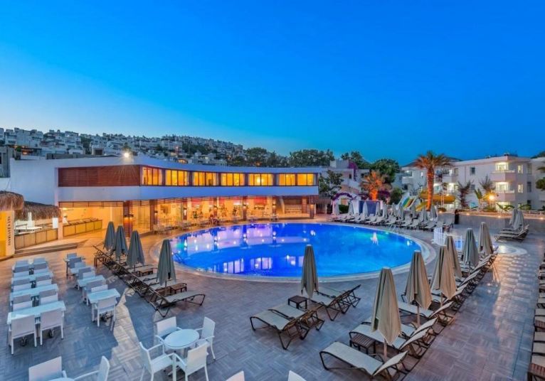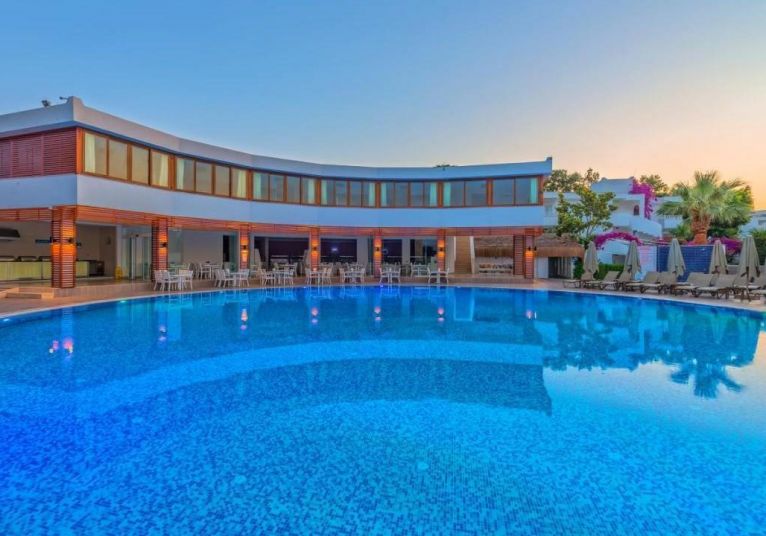 Bendis Beach Hotel 4* е декориран в син и бял цвят, които са специални за Бодрум, тъй като архитектурата в този район е украсена именно в тях. Хотелът разполага със 7 блока и All Inlcusive база на изхранване през летния сезон. Инфраструктурата позволява настаняване на хора с двигателни проблеми и стаи за непушачи.