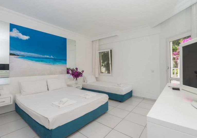 Очарователен хотел с прекрасна цветна градина, обширен плаж, басейн и семпъл дизайн, характерен за Бодрум!