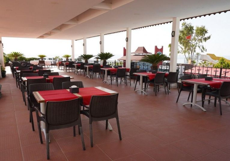 Основен ресторант, 2 бара, 2 открити басейна, 3 водни пързалки, Спа център, магазини, лекар на повикване, пералня, конферентна зала.