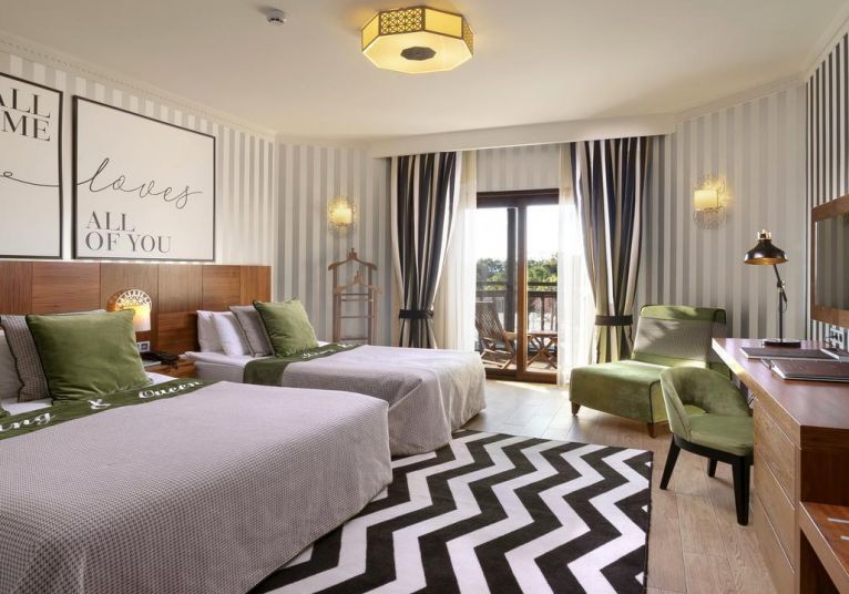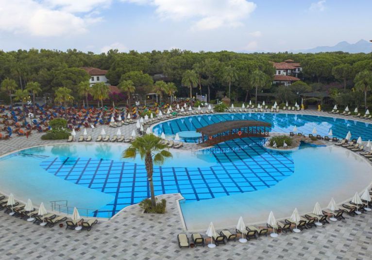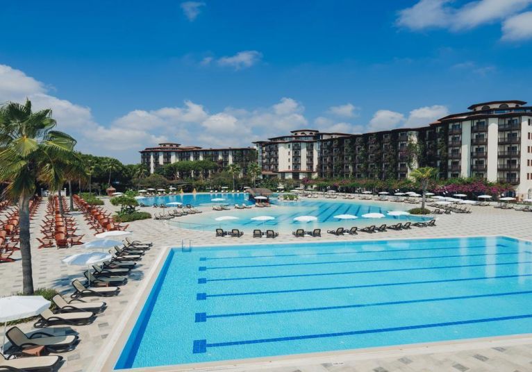 Основен ресторант, 5 а-ла-карт ресторанта (турски, италиански, рибен /за вечеря, 1 посещение за 7 дни безплатно в един от трите/, снек и бургер /за обяд/, 10 бара, 4 открити басейна, включително един с полуолимпийски размери, закрит басейн (отопляем за зимния период), Аквапарк за малки и големи, Спа център, магазини, пералня, 4 конферентни зали. За децата: детски клубове: 2 (мини-клуб 4-11г., джуниър-клуб 12-17г.), детски басейн, детска площадка, детски бюфет.