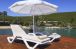 Собствен, пясъчно-чакълест със син флаг. Чадъри, шезлонги, матраци на плажа и при басейна – безплатно. Плажни кърпи - срещу депозит.