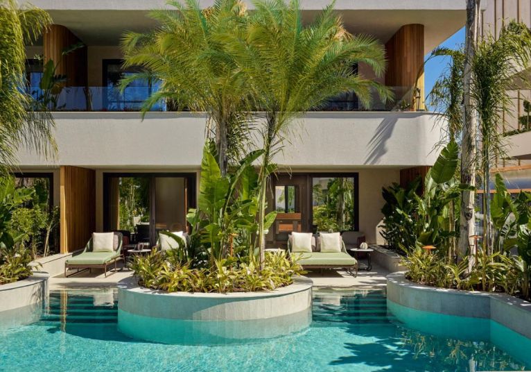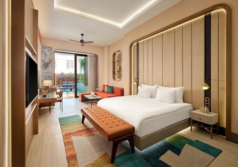 В клубната част са разположени 77 Deluxe Room (50 m²), 10 Deluxe Seafront (46-54 m²), 12 Deluxe Swim-Up (70 m²), 6 Junior Suite (80 m²), Jacuzzi Suite 23 (75-85 m²), 15 Pool Suite (85-105 m²).