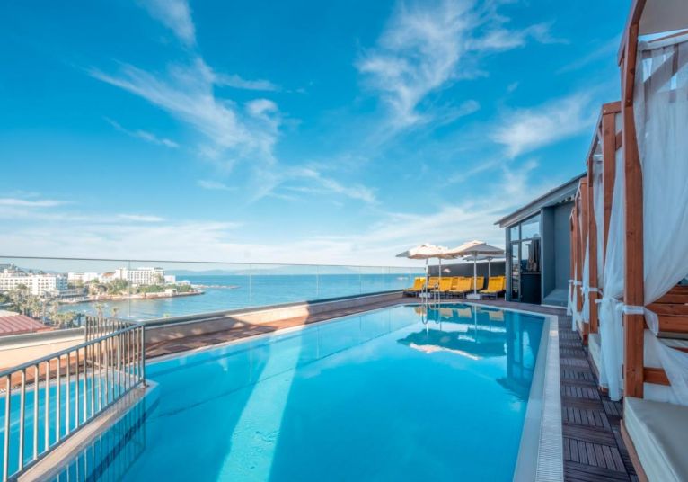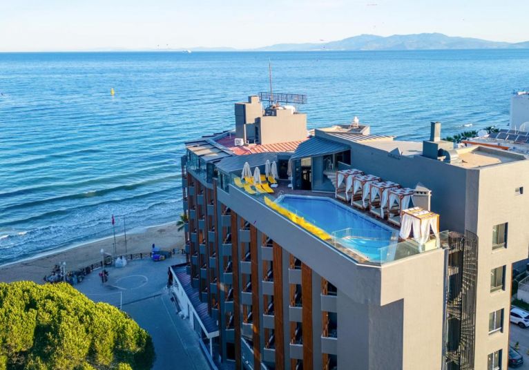 Хотелът се намира на 70 км от летище Измир, на 130 км. от летище Милас, на 3 км. от центъра на Кушадасъ, непосредствено разположен до плаж Лейдис бийч. Построен 1990 г, изцяло реновиран 2024 г/2025 г.