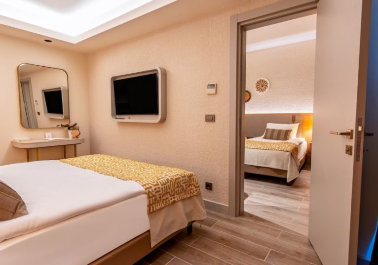 Стаите са оборудвани с климатик със система за централно регулиране, HD телевизор със сателитен приемник, телефон с директно избиране, баня с душ кабина, телефон в банята, сешоар, тоалетни принадлежности, минибар, сейф, сет за приготяне на кафе и чай, вграден гардероб, безплатен Wi-Fi интернет, балкон. Ежедневно почистване на стаите и презареждане на минибара.