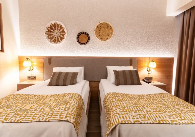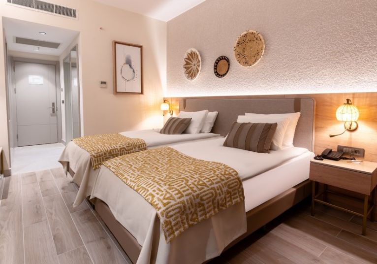 В стаите: Хотелът се състои от две 7 етажни сгради и разполага с общо 344 стаи рапределени в няколко категории: Deluxe Rooms - 248 стаи (26 m²), Deluxe Jacuzzi Rooms - 20 стаи (26 m²), Deluxe Family Rooms - 25 стаи (47 m²), Deluxe Suite Rooms - 22 стаи (43 m²), Deluxe Swim-Up Rooms - 20 стаи (29 m²), Deluxe стаи за инвалиди - 3 стаи (26 m²).