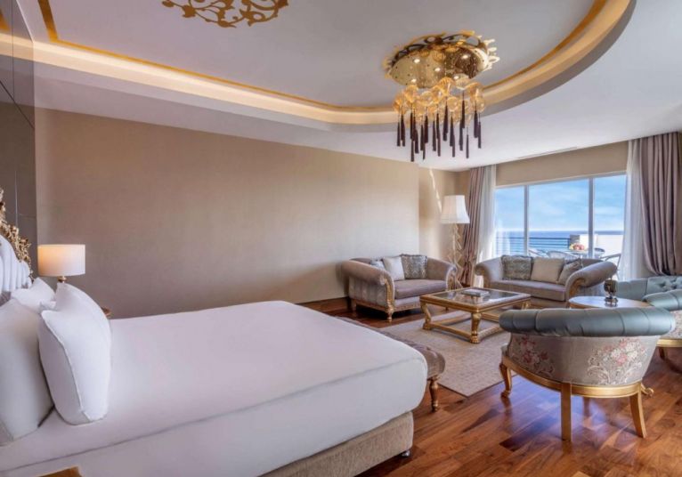 В стаите: Хотелът разполага със 181 стаи. Всички стаи са оборудвани с: централен климатик, телевизор, мини бар, баня с душ, сешоар, телефон, сейф. Всяка стая има балкон с изглед.