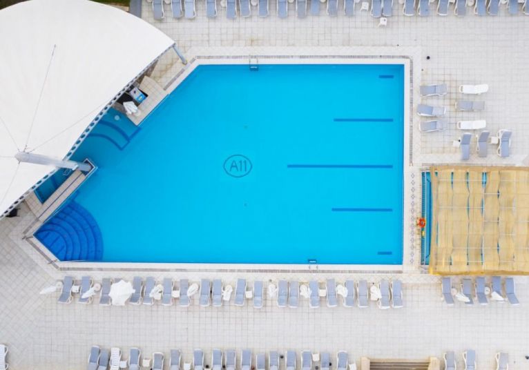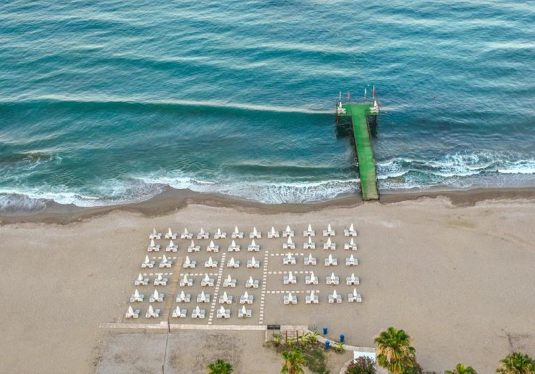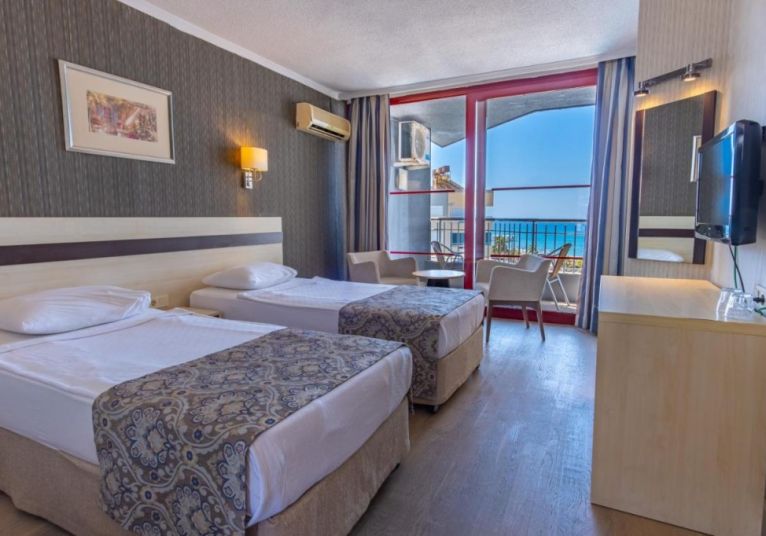 Плаж: Частен пясъчно-чакълест плаж на 50 м от хотела, кей. Чадъри, шезлонги, матраци, хавлии – безплатно. Между хотела и плажа има път и алея, има и подземен проход. Дължината на плажа е 100м.