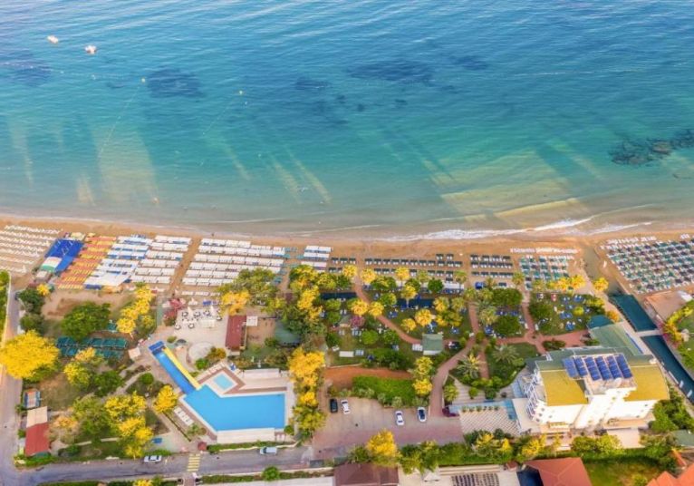 Местоположение: хотелът се намира в селището Türkler, южна Турция, на 22 км от град Алания и около 90–100 км от летище Анталия. Kelionių Akademija+3Join UP!+3onextour.bg+3