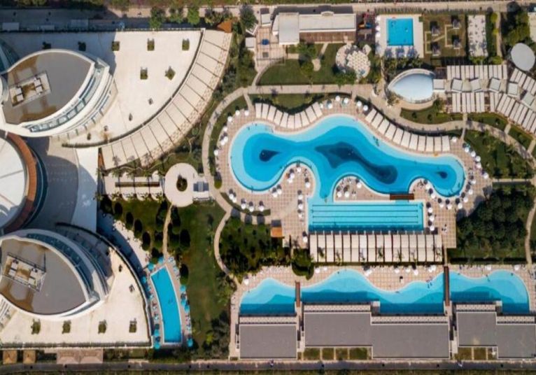 Намира се на 15 км. от летище Анталия, на 17 км. от центъра на Анталия, в района на Лара, на брега на морето. Построен през 2009 г., с обща площ 55 000 м2, последно реновиран през 2020 г.