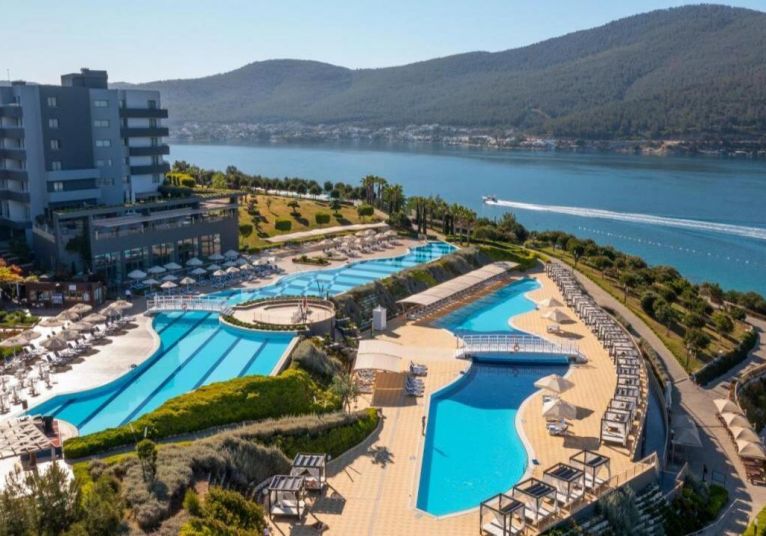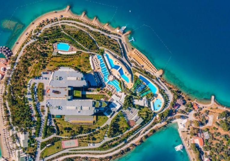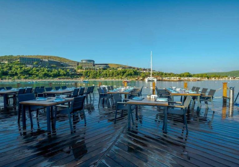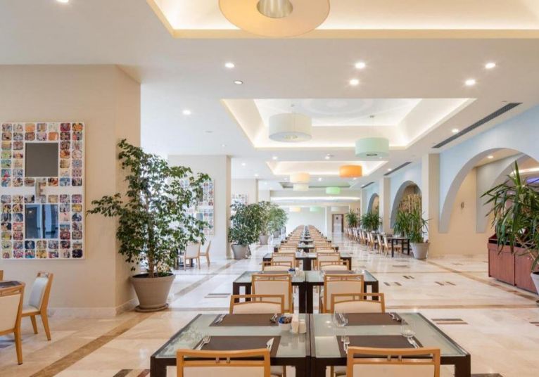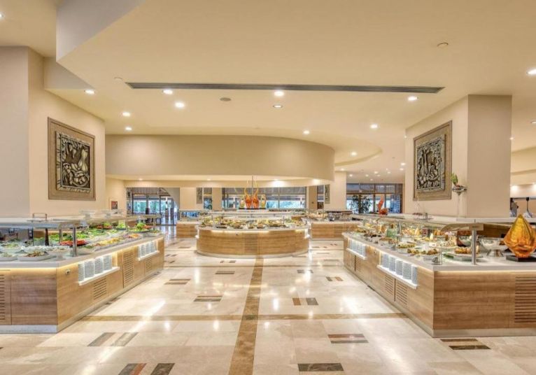 Основен ресторант PINA с диетичен, вегетариански и детски кът; 5 а-ла-карт ресторанта (турски MARDIN, гръцки MYLOS, средиземноморски VIRA, италиански PULCINELLA, тепаняки SAKURA - с предварителна резервация/ 1 безплатно посощение на 1 от ресторантите при минимум 7 нощувки, с изключение на SAKURA Tappanyaki Restaurant; 4 снек ресторанта (Pina, Mylos, Vira, Sunrise); 12 бара (Sunset Lobby Bar, Sunris Bar, Vira Event Bar, Pool bar, Sisha Lounge, Mylos Bar, Sakura Bar, Pulcinella Bar, Club Azure/ Beach Bar, Disco Bar), Starbucks, сладкарница, 2 открити басейна, 1 закрит басейн, аква парк с 10 водни пързалки, амфитеатър, СПА център, дискотека, магазини, 9 конферентни зали, паркинг. На плажа има общо 16 кабани, които могат да се наемат срещу допълнително заплащане, с включен сервиз.