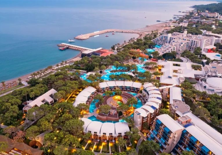 Разположение: Този обширен хотелски комплекс с площ от 250,000 м² се намира на морския бряг в залива Анталия. Град Гьойнюк е на 5 минути с кола от комплекса. Центърът на град Анталия, който привлича със забележителности като археологическия музей и Портата на Адриан, е на 35 минути с кола. Летище Анталия е на 50 километра.