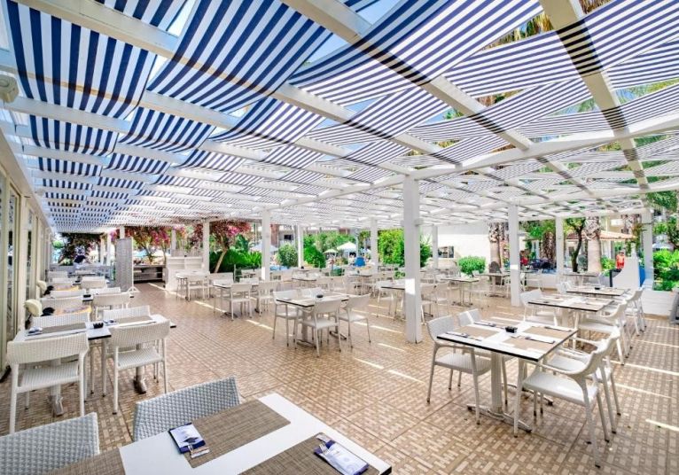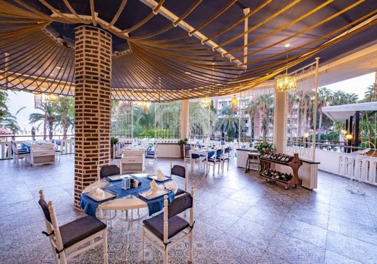 На територията на хотела: Един основен бюфет ресторант, бистро а-ла-карт ресторант (вечерята се заплаща допълнително), средиземноморски а-ла-карт ресторант (вечерята се заплаща допълнително), снек ресторант – бургери, гьозлеме и други, 5 бара – един от които 24 часа (panorama bar), сладкарница, 5 външни басейна, 1 закрит басейн, тематичен аквапарк.