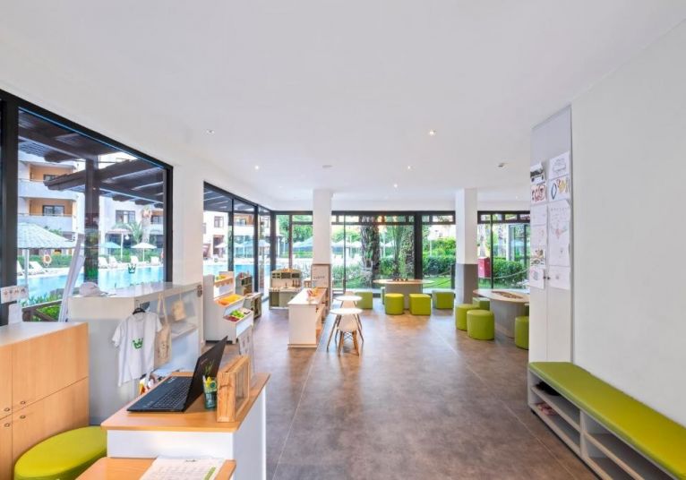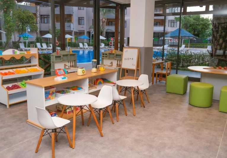 За децата: Мини клуб (4-12 г.), тийн клуб (12-17 г.), детска площадка, детски басейн, водни пързалки, детско кино на открито, зала за игри, столчета за хранене.