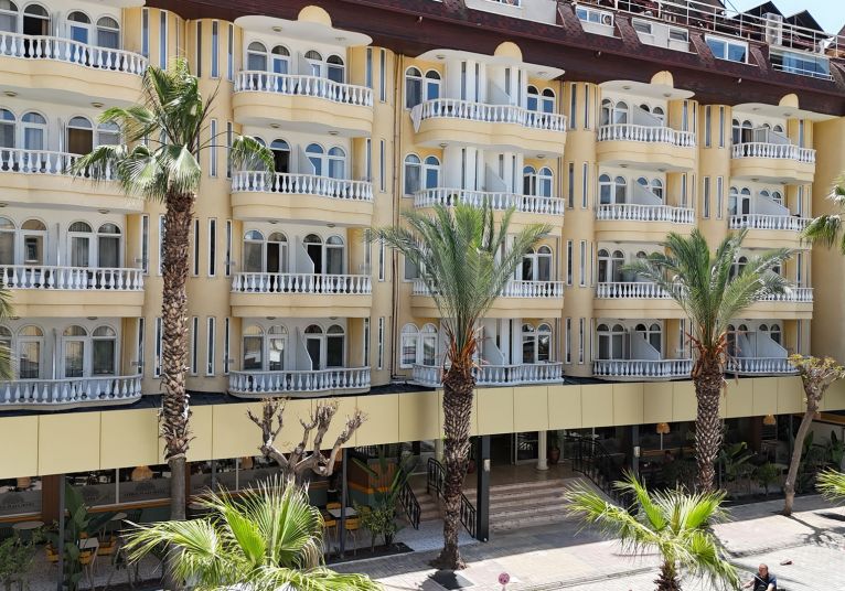 Намира се на 130 км от летище Анталия, на 140 км от центъра на Анталия, на 4 км от центъра на Алания, на 150 м от брега на морето. Построен 1998 г., частично реновиран 2025 г.