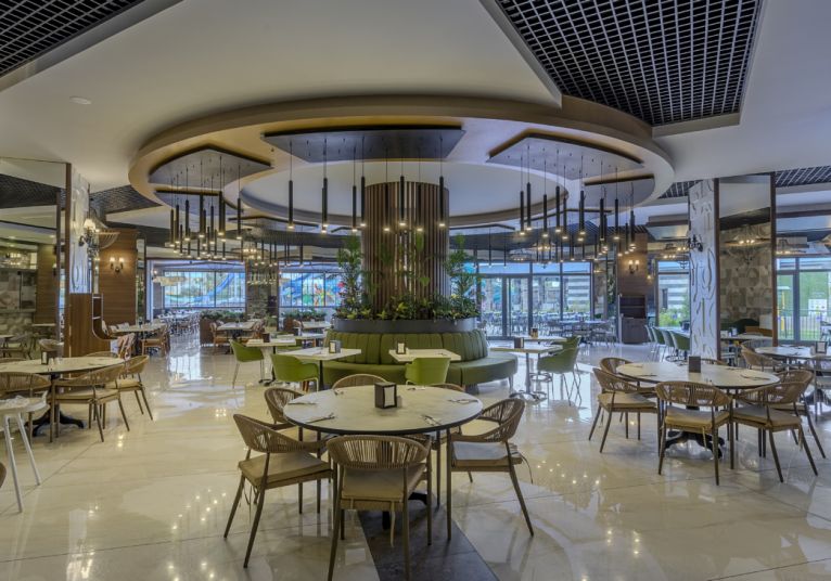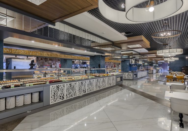 Основен ресторант, 1 а-ла-карт ресторант с предварителна резервация, съгласно концепцията на хотела), сладкарница, бургер бар Burgerland (24/7), 9 бара (1 от които 24/7 и 2 от които са разположени на територията на Etftalia Island, 8 открити басейна, водни пързалки, СПА център, дискотека (на територията на Etftalia Island), магазини, конферентна зала, паркинг.