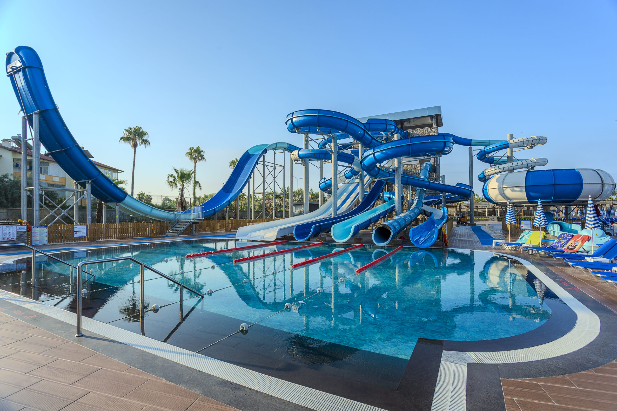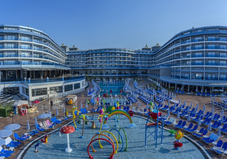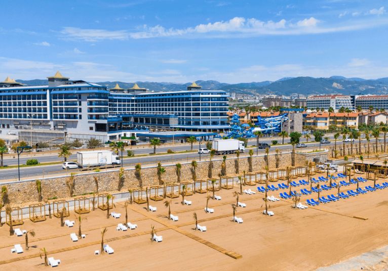 Намира се на 100 км от летище Анталия, на 110 км от центъра на Анталия, на 18 км от центъра на Алания, на 250 м от брега на морето, чрез подлез. Построен 2024 г., на обща площ от 43 000 м2. Достъп до Еftalia Island, разположен на плажа, състоящ се от аквапарк с басейни, водни пързалки и заведения.