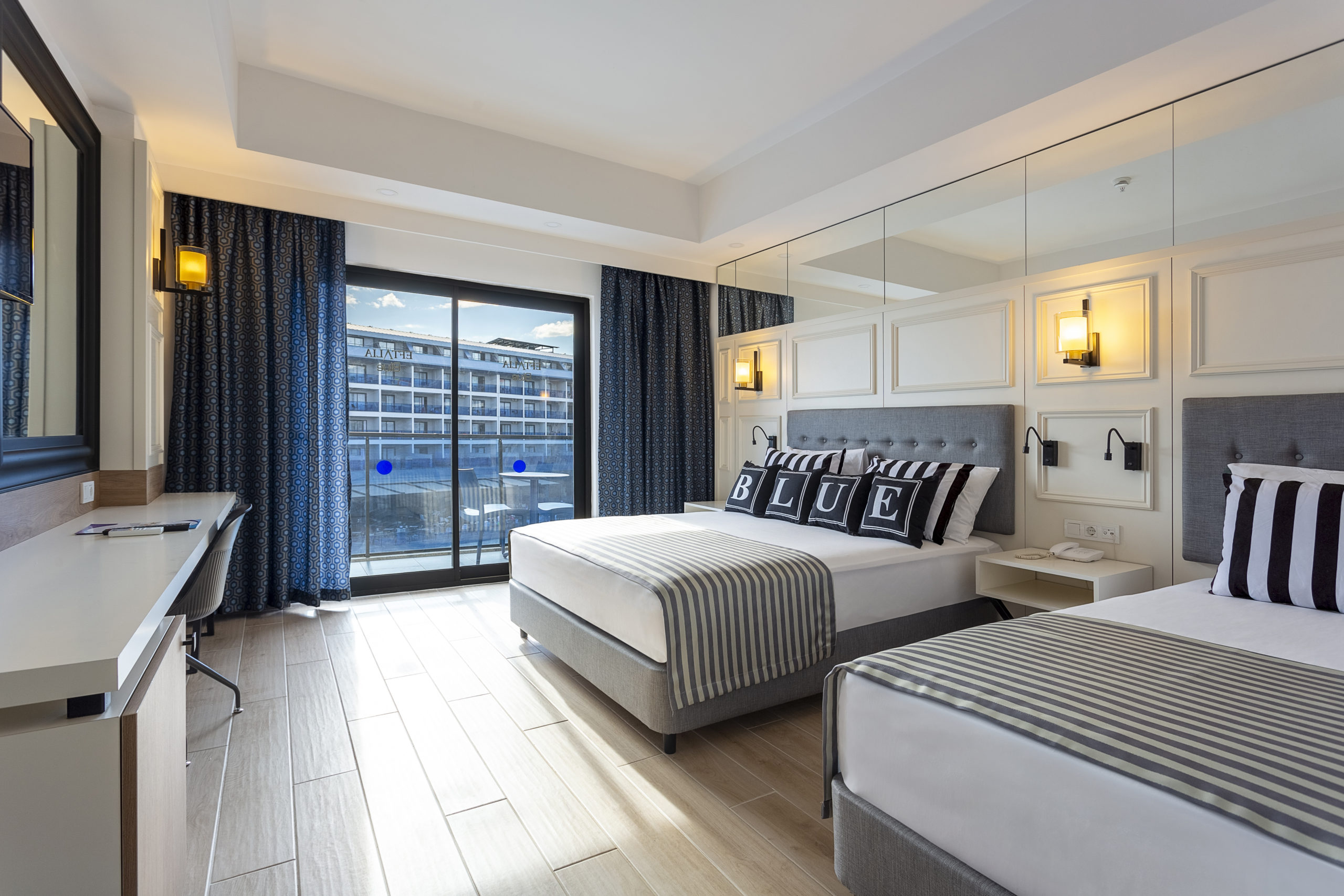 Всички стаи са оборудвани с климатик, телевизор, телефон, баня с душ, сешоар, сет за чай/кафе, минибар (безплатен), сейф (безплатен),балкон.
