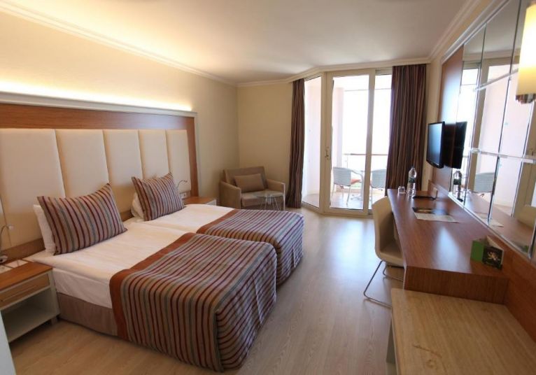 В стаите: Хотелът разполага с общо 468 стаи разпределени в няколко категории – стандартни около 25м2, и фамилни около 52 м2 – двустайни. Всички са оборудвани с централна климатизация, баня с душ, сешоар, LCD телевизор, сейф, безплатен интернет (WiFi), минибар (платен).