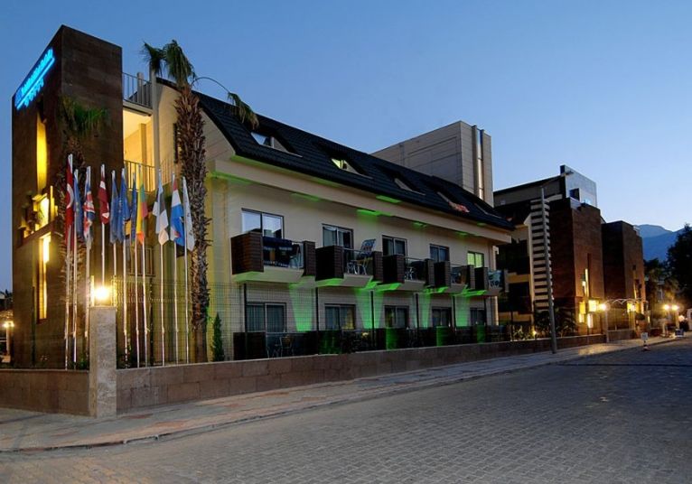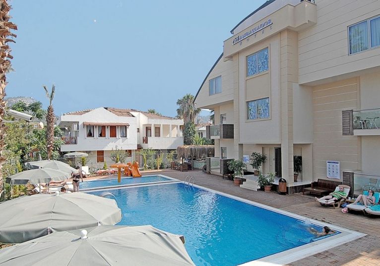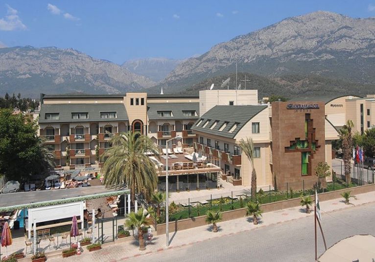 Разположение: AMBASSADOR HOTEL 4* се намира в центъра на Кемер, на 60 км от международно летище Анталия, на 40 км от центъра на Анталия, на 50 м от брега на морето, през пътя. Открит 2007 г., реновиран  2018 г.