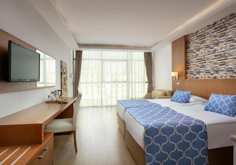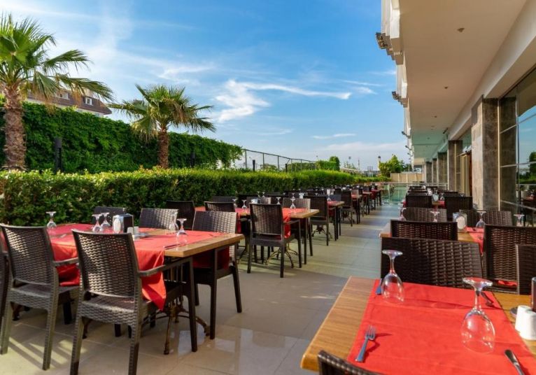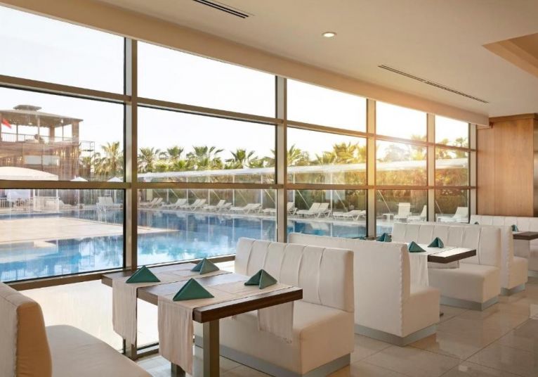 На територията на хотела: Основен бюфет ресторант, 2 а ла карт ресторанта(рибен и турски, с предварителна резервация и веднъж безплатно посещение на един за 7 дневен престой), снек ресторант, сладкарница, 5 бара, открит и закрит басейн, басейн с водни пързалки, СПА център, фитнес зала и магазини.