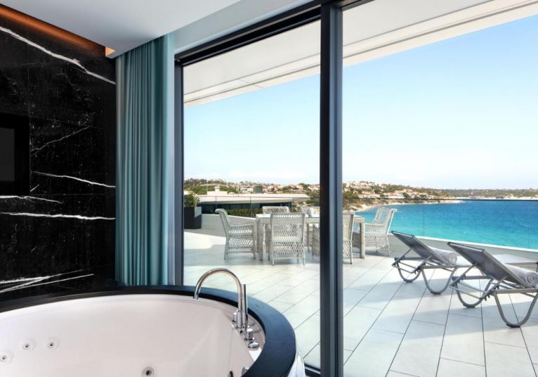 Хотелът разполага със 105 стаи, всички оборудвани с климатик, телевизор, телефон, баня с душ/вана, сешоар, тоалетни принадлежности, мини бар, сет за чай/кафе, сейф, балкон, Wi-Fi интернет. Почти всички стаи са с изглед морето. Почистване на стаите - всеки ден, смяна на спалното бельо и кърпите - 2 пъти в седмицата.