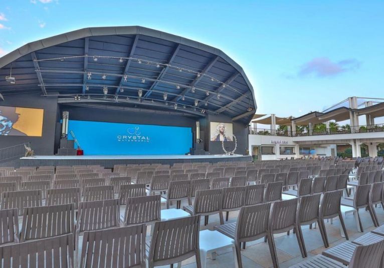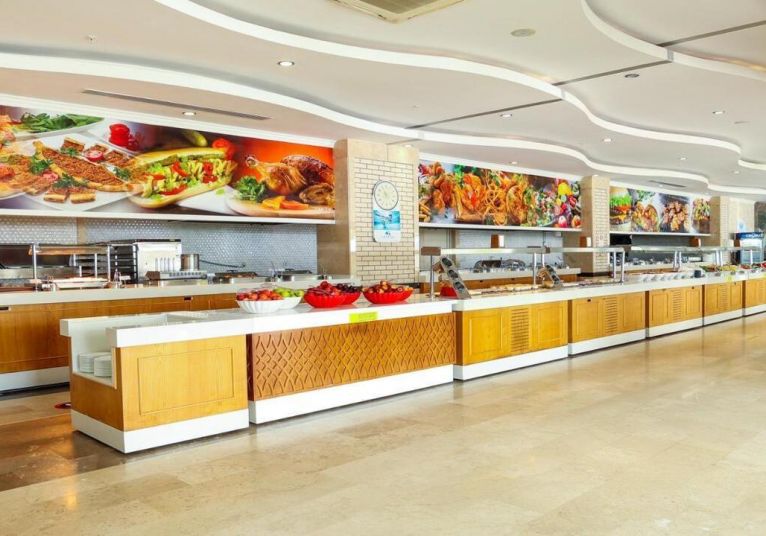 Основен ресторант, 5 a - лa - карт ресторанта ( по едно безплатно посещение по време на престоя ), 7 бара, магазини, Интернет - кафе, безжичен интернет на територията на хотела ( безплатно ), 2 открити басейна, закрит басейн, аква парк, 5 водни пързалки. За децата: мини клуб(4-12г.), 2 детски басейна. Безплатни услуги: турска баня, сауна, парна баня, джакузи, тенис корт, баскетбол, плажен волейбол, фитнес, тенис на маса, водна топка, водна аеробика, дартс, мини голф, кино. Платени услуги: масаж, пилинг, билярд, боулинг, видео игри, джага, осветление на тенис корта, тенис ракети и топки под наем, кану, водно колело, сърф (с лиценз), голф, водни ски, банан, фризьорски салон, СПА-център