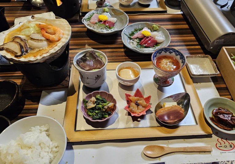 6 вечери (без включени напитки), 4 от които в местни ресторанти, 1 в ресторант с Maiko/Geiko представление и 1 в хотела в Хаконе;