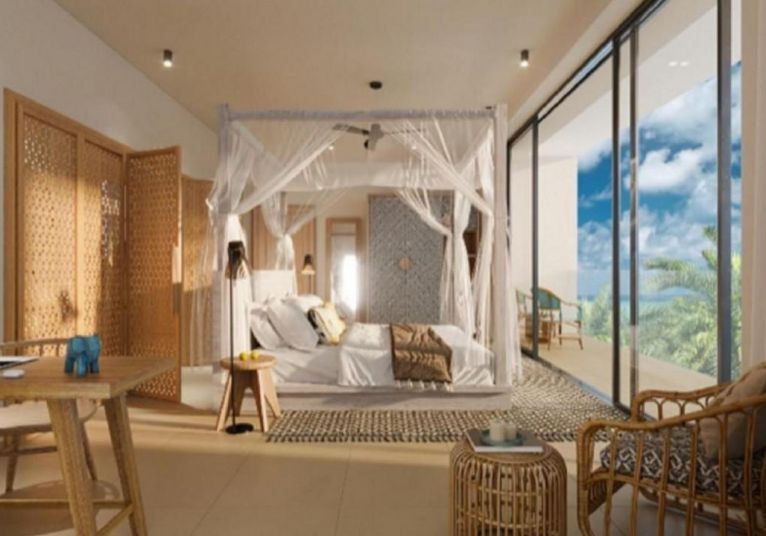 Супериорна стая с гледка море (2 възрастни / 2 възрастни + 1 дете (под 12 г.) / 2 възрастни + 1 дете (под 12 г.) + 1 бебе (под 2 г.): Тази съвременно обазаведена стая, с площ 35 кв. м., предлага балкон с гледка към градина или басейн. Разполага съв спалня или 2 отделни легла + 1 единично легло, баня с душ, климатик, сейф, смарт телевизор, бюро, електрическа кана за кафе или чай, минибар.
