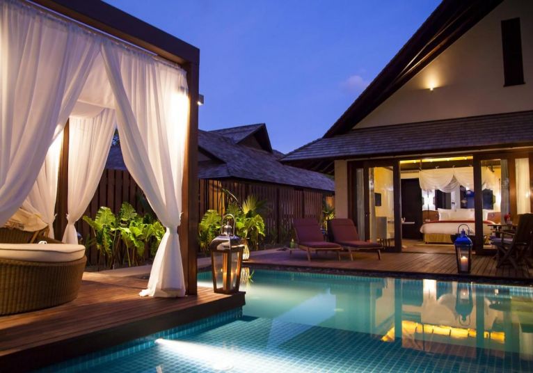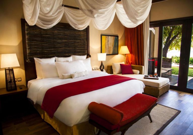 Grand Beach Pool Villa (250 кв. м) – Вилите, сгушени до плажа, предлагат несравнимо преживяване. Голямото легло, просторна зона за отдих, отделна трапезария са само част от обширния набор от модерни удобства.