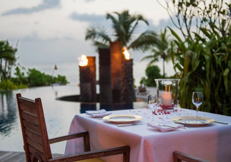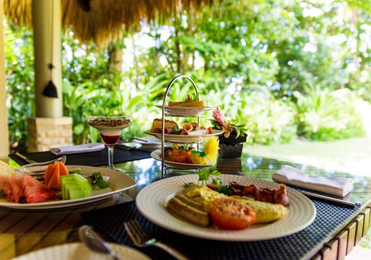 Хотелът предлага fine dining специалитети, инспирирани от креолската, азиатската, индийската, японската и средиземноморската кухня. Разполага с основен ресторант - Tec-Tec Restaurant, снек бар при басейна Sunset Pool Bar, ресторант The Wine Boutique, възможност за вечеря на свещи на самия плаж Dining by Design, както и In Villa Dining, луксозен и иновативен СПА център. Безплатни услуги: високоскоростен Wi-Fi, ранен чек ин и късен чек аут, класове по йога и qi gong, маникюр и педикюр. Платени услуги: екзотични масажи и процедури в СПА центъра. Плаж: собствен, с фин бял пясък.