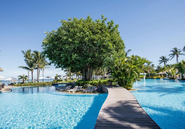 Това е луксозен хотел с изглед към Ресторантите на хотелски комплекс Sugar Beach сервират приготвени с въображение рецепти от Мавриций, италианска и интернационална кухня. Гостите могат да се насладят на спокойствието с апетитен коктейл в бара. До голф клуб Ile Aux Cerfs с 18 дупки може да се стигне с трансфер с лодка от Pointe Maurice, който се намира на 60 метра от комплекса. Удобствата в хотела включват още фитнес център и слънчева тераса. Индийския океан, който предлага СПА и уелнес център, тропическа градина и голям открит басейн.
