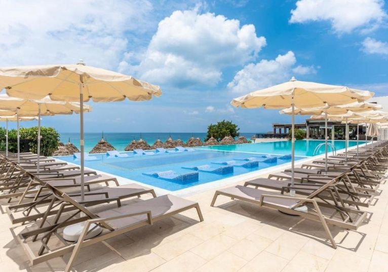 RIU Palace Zanzibar 5*е разположен на северозападното крайбрежие на Занзибар, на красивия плаж с бял пясък Нунгви. Град Стоун Таун е на 55 км от хотела. Хотелът Riu Palace Zanzibar се намира на красив плаж с бял пясък с кристални води и предлага на своите гости почивка на база ол инклузив с качеството на веригата RIU Hotels & Resorts В Riu Palace Zanzibar. На разположение на гостите са три басейна, СПА център, ресторанти и барове. За доброто насроение се грижи екип от аниматори, а вечер има музика на живо.Общите части и стаите разполагат с безплатен Wi-Fi.