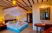 Sultan Sands разполага с около 76 просторни стаи, разположени в самостоятелни вили с изглед към океана или градината. Всяка стая е обзаведена с дървени мебели, има климатик, сателитна телевизия, сейф, минибар, сешоар, комарници, тераса или балкон.