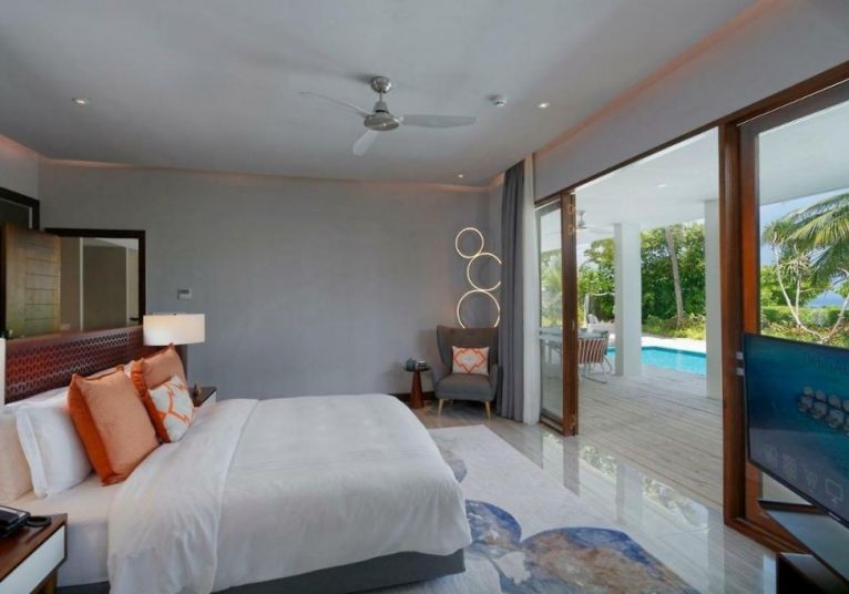 Луксозни вили с просторна спалня, собствена тераса и гледка към океана, идеални за спокойна почивка с всички удобства.