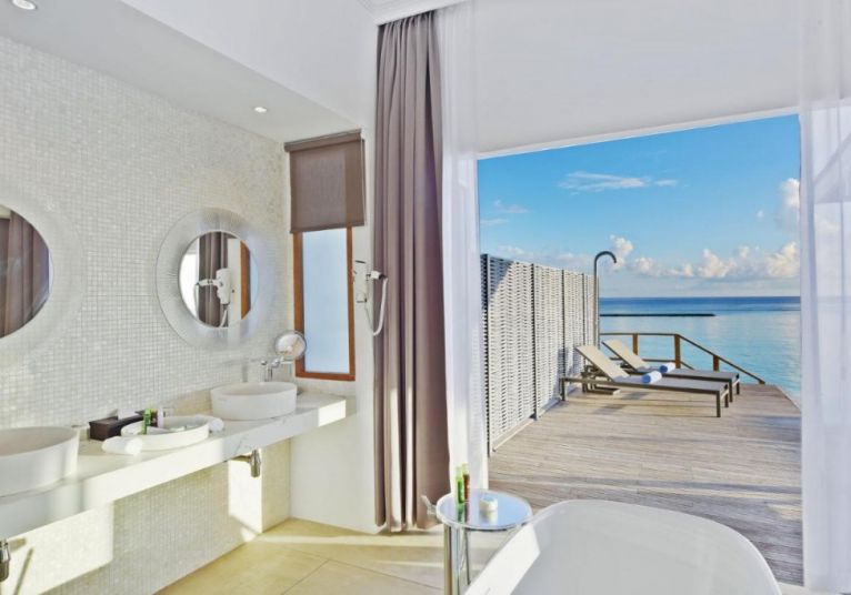 Разположени в средата на тюркоазената лагуна, Deluxe Water Villas разполагат с голямо легло, дневен диван, просторна баня с вана и широка тераса със стъпала директно към водата, както и богато зареден минибар с винена селекция от над 30 бутилки.