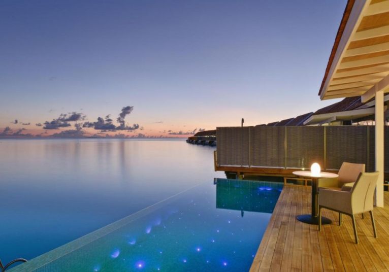 Water Villas with Pool се намират в лагуната или срещу рифа и предлагат модерен интериор като Deluxe Water Villas, допълнени с частен басейн (18 кв.м) с изглед към океана.