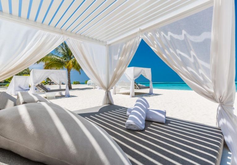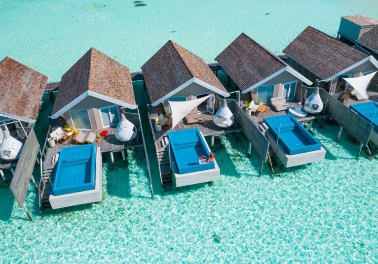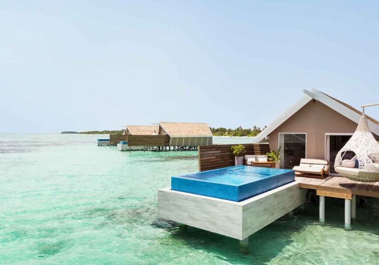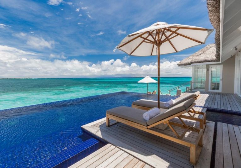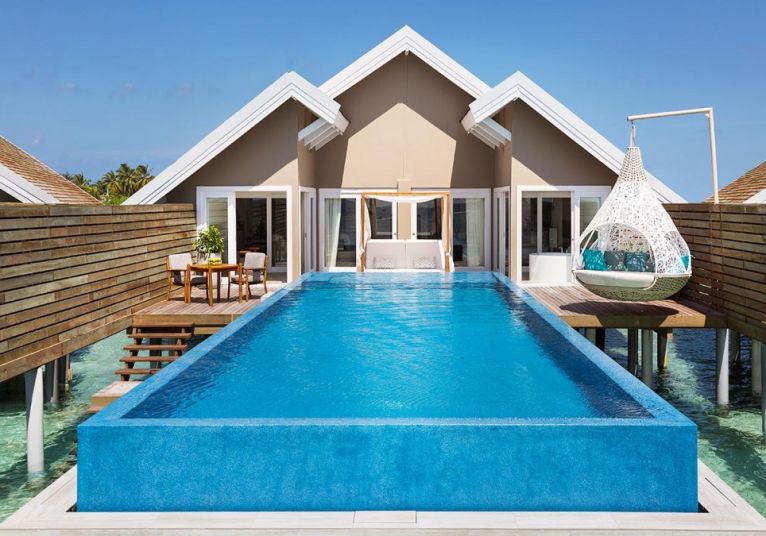 Малко пътешествия са по-гламурни от бягството до Малдивите със самотните си острови и кристално чисти води – вила с две спални (130 м²), за до 4-ма възрастни и 2-ма тийнейджъри, с директен достъп до плажа, две свързани помещения, обзаведена частна тераса и вътрешна вана.