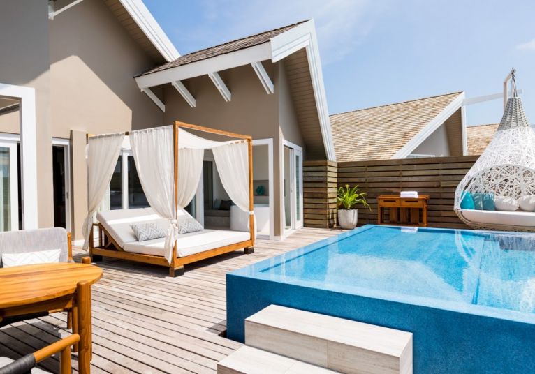 Вила с една спалня (220 м²), за до 2-ма възрастни, с директен достъп до лагуната, частен инфинити басейн и джакузи, лични шезлонги и люлка „птичо гнездо“, както и всекидневна и трапезария – само едно гмуркане дели леглото ти от малдивските води.
