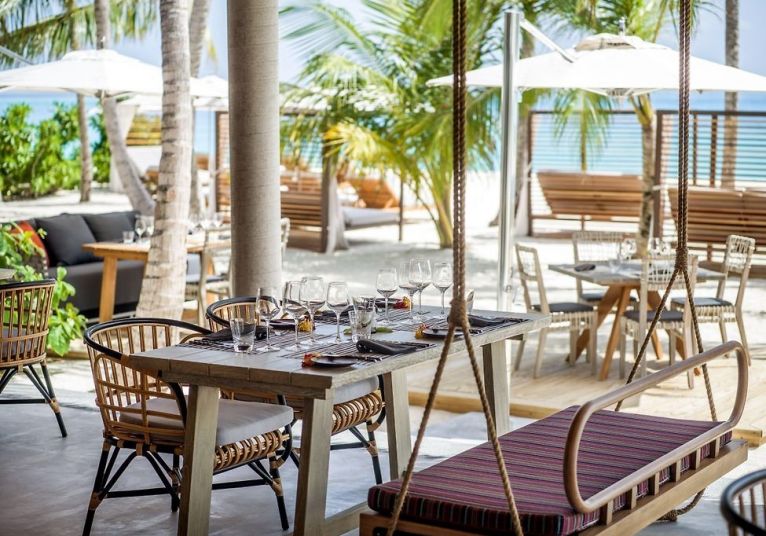 На територията: На разположение на гостите има 5 ресторанта. В The Lighthouse се предлагат средиземноморски тапас на фона на 360-градусов изглед, в The Fish Market ястията от прясно уловена риба са вдъхновени от Южна Азия, а в Café Umi се сливат различни междуконтинентални вкусове. Гостите могат да се отдадат на романтика с авторски коктейли в бар The Sunset Bar или да се презаредят в The Retreat, отделно място само за възрастни с изглед към тъмносинята лагуна. Dining by Design предлага персонализирани преживявания като круиз по залез. Организира се и гурме пикник, а филмовата вечер под звездите ще създаде незабравими спомени за цял живот.