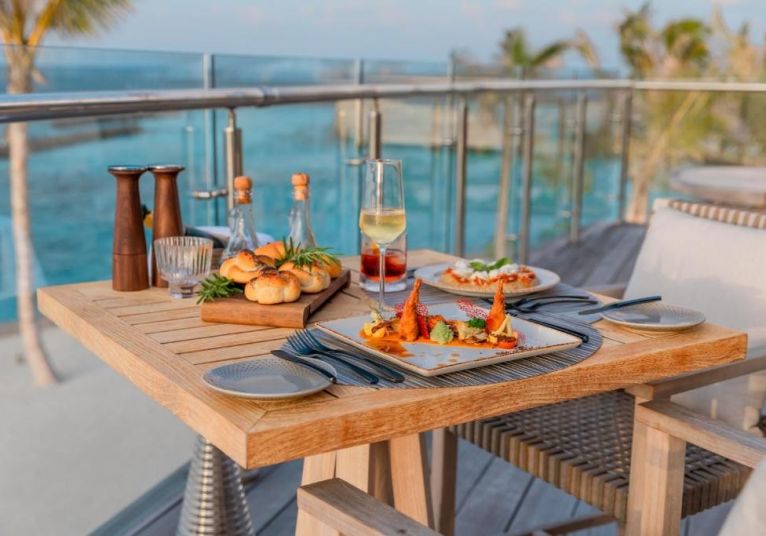 На територията на хотела: Noo Faru предлага разнообразни възможности за отдих и забавление: ресторант с интернационална кухня, бар край басейна Ufaa, бар и ресторант Ke-Un, спа център Corner, плажен бар Beach Hut, пиано бар, винарска изба, както и лекарски услуги, бутик, Wi-Fi във вилите и в някои обществени зони и професионален фотограф.