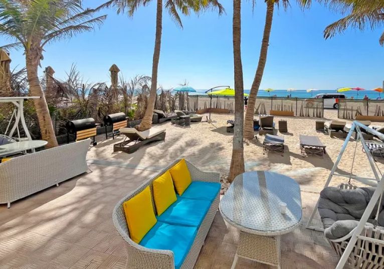 Собствен пясъчен плаж. Чадъри и шезлонги на плажа - безплатно.