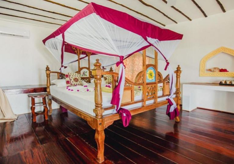 Всички стаи са обзаведени в традиционен занзибарски стил с дърворезба и естествени материали.