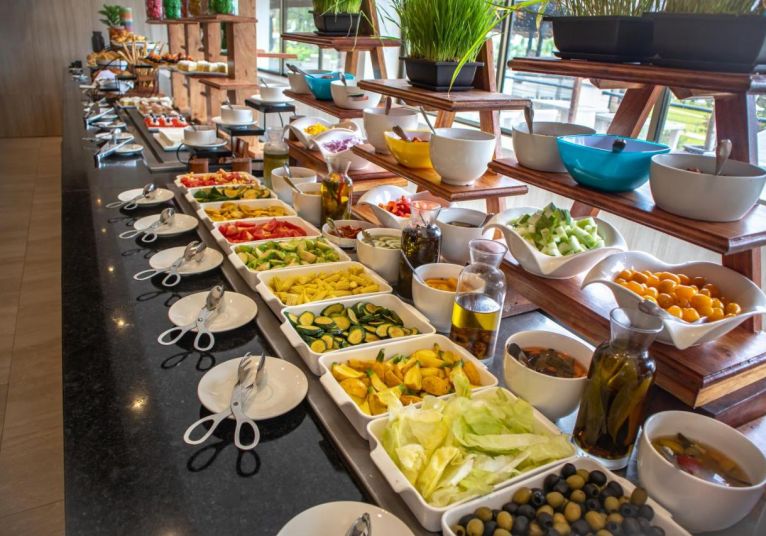 Основен ресторант с богат избор от международни ястия, тестени изделия, пица, азиатска кухня и прясно приготвена риба, морски дарове и меса, а-ла-карт ресторант, 3 бара, 4 открити басейна, джакузи, фитнес на открито, СПА център. Веднъж седмично се организира вечеря на плажа и между осветени през нощта басейни с барбекю и местна музика.