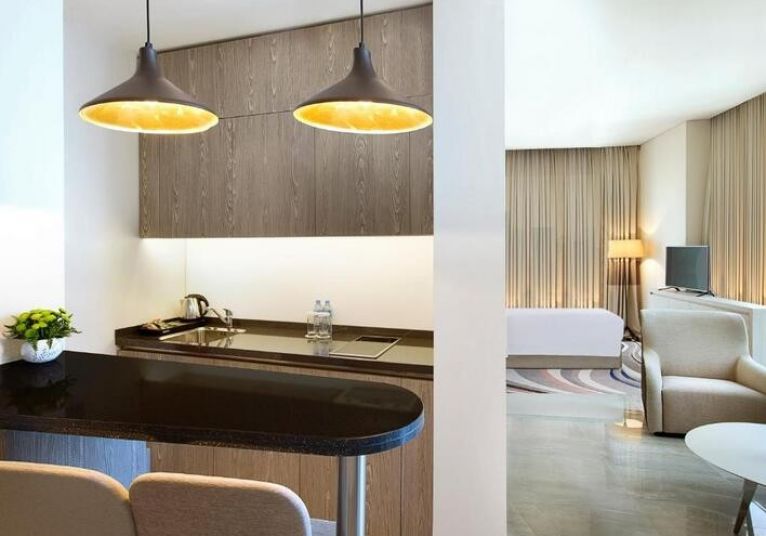 Deluxe Studio (70 кв. м) предлага панорамна гледка към Арабския залив и Корниш, king-size легло, баня с хидромасажна вана и душ, както и модерна кухня с микровълнова, мини хладилник и пералня. В стаята ще намерите още 55-инчов HDTV, Wi-Fi, работно бюро, кът за сядане и комплект за чай и кафе.
