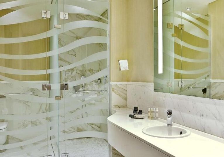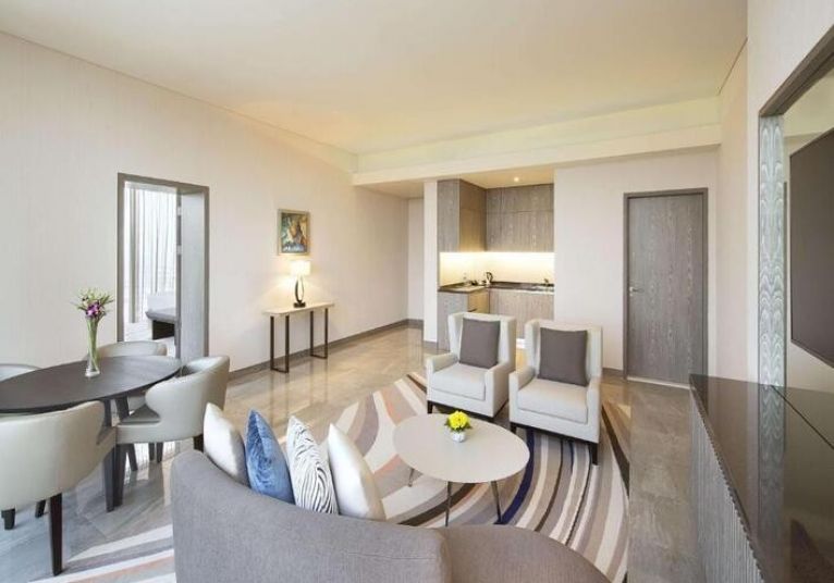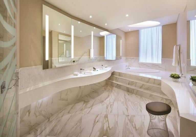 Потопете се в лукса на този просторен Presidential Suite (188 кв. м) на 14-ия етаж с впечатляващи панорамни гледки към Арабския залив и Корниша. Насладете се на голяма баня с джакузи и душ „дъждовен поток“, а в просторния хол можете да посрещате гости на трапезария за 10 души или да релаксирате на удобния диван.