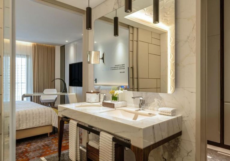 Le Royal Méridien Place Vendôme Lusail предлага 5-звездни помещения за настаняване с хидромасажна вана и тераса.