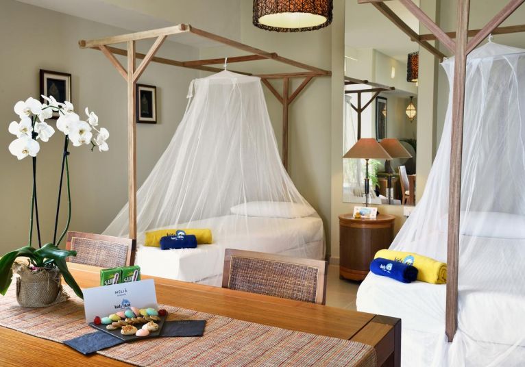 Хотелът разполага с общо 124 стаи, от които 60 Melia Garden (разположени на приземния етаж с директен достъп до градината, 50 кв.м), 40 Melia Terrace (разположени на първия етаж с изглед към градината или частичен изглед към океана, 50 кв.м), 5 Family Rooms (разположени на първия етаж с изглед към градината или частичен изглед към океана, състои се от две спални, всекидневна, две тераси, 117 кв.м) и 14 Ocean View Bungalows (уютно дървено бунгало с голяма тераса, с директен изглед към океана, 65 кв.м). Всяка една от стилно и съвременно обзаведените стаи е оборудвана с климатик, телевизор, телефон, баня с душ/вана, сешоар, минибар, сет за чай/кафе, сейф, балкон или тераса.