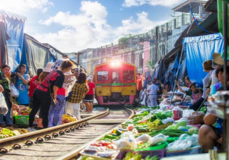 Посещение на Плаващият пазар в Damnoen saduak и Влаковият пазар в Банкок Mae Klong Railway Market